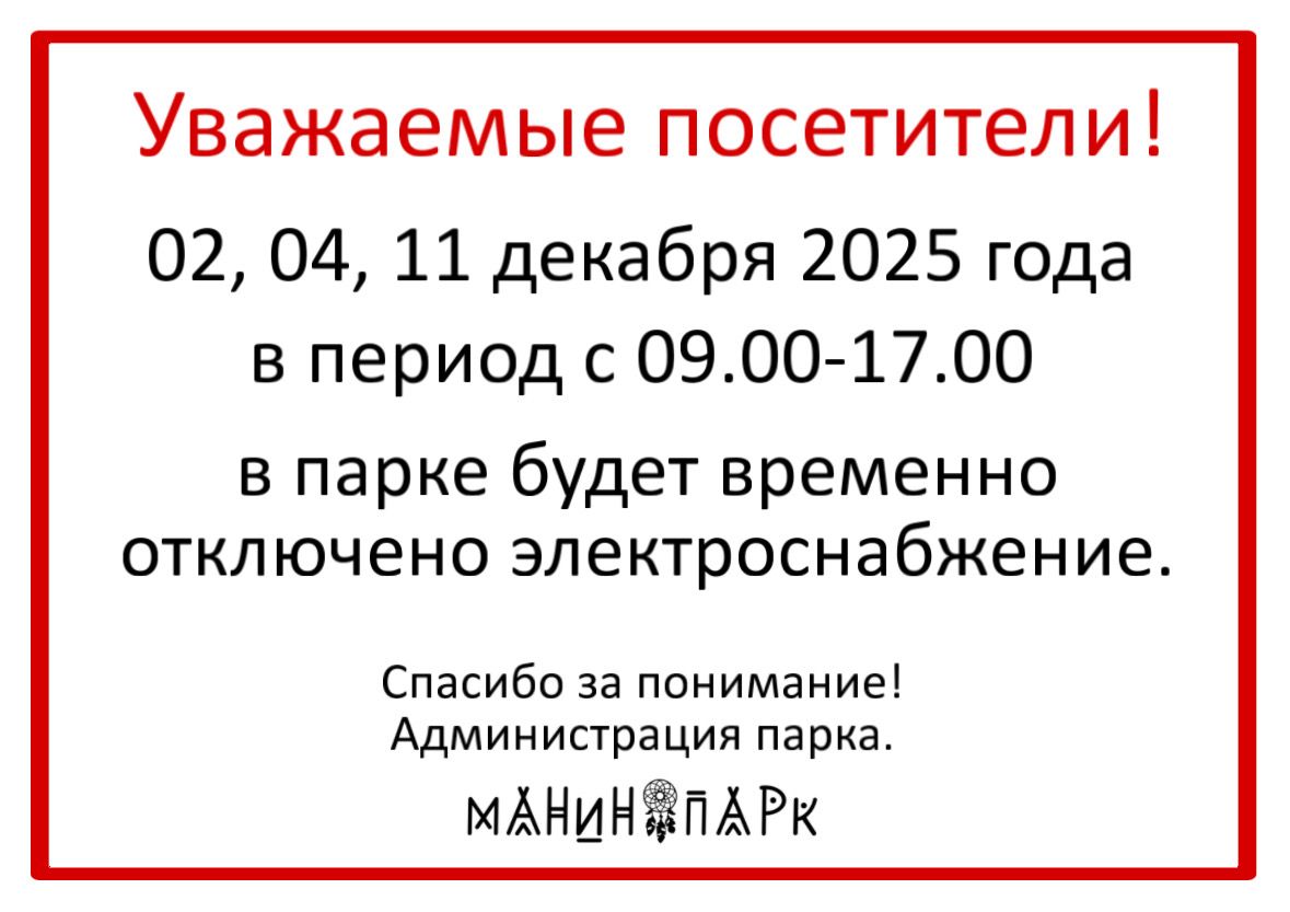 Сообщаем, что 2, 4 и 11 декабря 2025 года в парке планируется отключение электроэнергии.